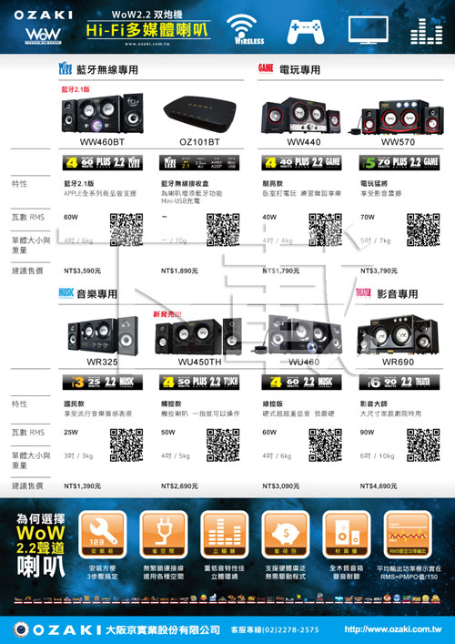 201202 OZAKI WOW2.2 WW460BT藍牙喇叭 DM-反